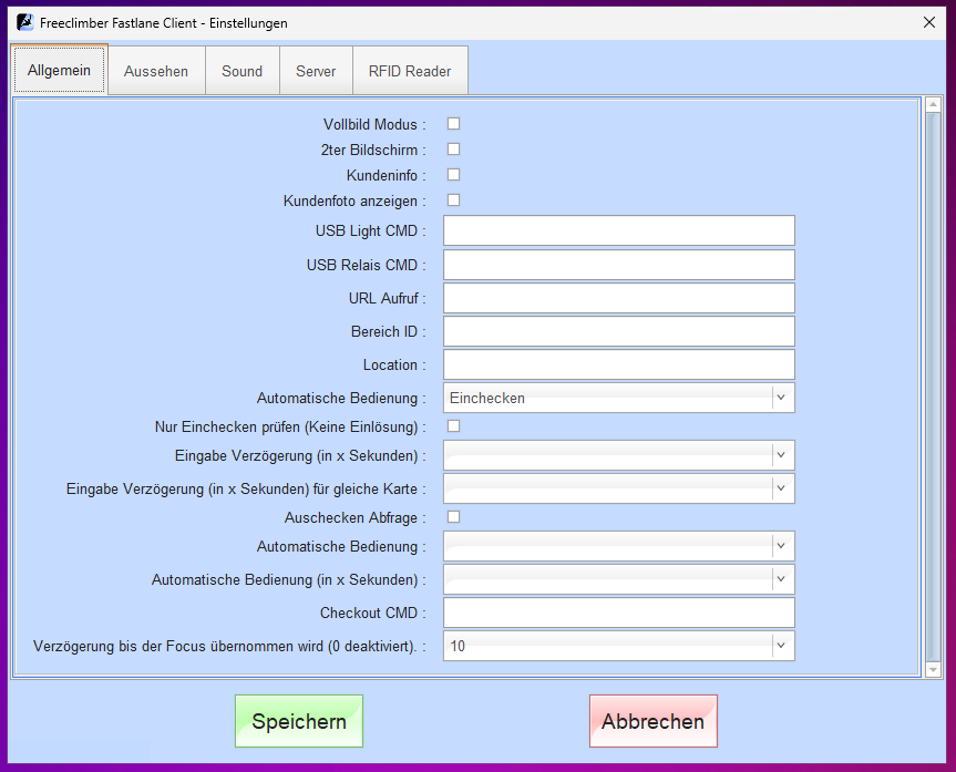 | Kundenfoto anzeigen | Hier stellst du ein, ob die Kundendaten beim Einchecken dem Kunden angezeigt werden sollen. Falls diese Funktion beim Server aktiviert ist, soll diese hier auch aktiviert werden. |