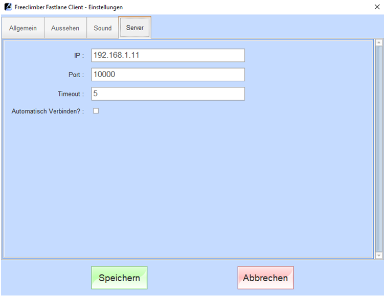 Sobald du die Fastlane zum ersten Mal startest, musst du hier die IP-Adresse des Fastlane Servers eintragen.