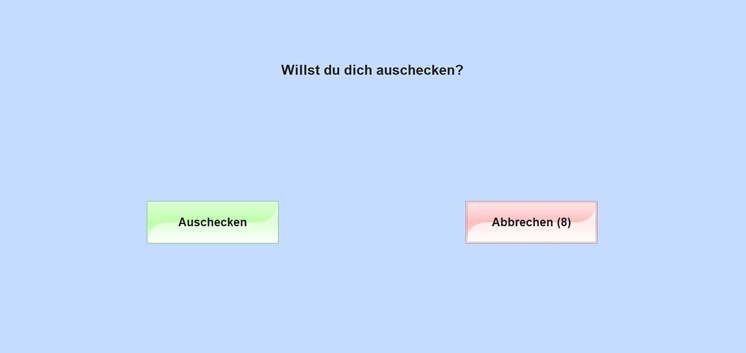 | Abbrechen: Dies heißt, dass beim Auschecken der Button Abbrechen die Hauptfunktion hat. Dies bedeutet, dass die angegebene Zeit (s. weiter unten) für diesen Button angewendet wird | |