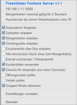 Falls du deine Besucher noch zusätzlich an der Kasse kontrollieren möchtest, schalte diese Funktion ab. In solchem Fall bekommst du die Möglichkeit, jeden Besucher manuell freizugeben. Dazu muss der Fastlane Server auf der Kasse laufen.