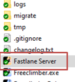 Falls du die Notwendigkeit hast, den Server neu zu starten, gehe in den Ordner Freeclimber auf dem PC, wo die Fastlane läuft/angeschlossen ist. Suche dort das orangene Icon für Freeclimber Fastlane Server. Führe diesen mit Doppelklick aus.